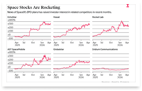 SpaceX's rising valuation and potential IPO have lifted shares of smaller space rivals like Rocket Lab, AST SpaceMobile, and Viasat, even though many of these companies face the greatest competitive threat if SpaceX extends its dominance in launches and satellite broadband.