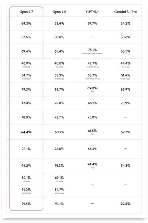 Fourth release: Anthropic just shipped Claude Opus 4.7, and the mood is... complicated. On paper, the new flagship model beats Opus 4.6, GPT-5.4, and Gemini 3.1 Pro on key benchmarks, especially in agentic coding and multi-step engineering tasks. It processes images at 3x the resolution, follows instructions more literally, and can even verify its own outputs before reporting back. Sounds great, right?